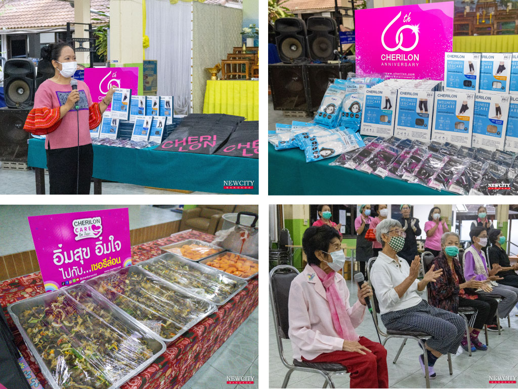 ในวาระครบรอบ 60 ปี เชอรีล่อนร่วมแบ่งปันความสุขกับศูนย์พัฒนาการจัดสวัสดิการสังคมผู้สูงอายุบ้านธรรมปกรณ์ เชียงใหม่ ในโครงการ “อิ่มสุข อิ่มใจไปกับเชอรีล่อน” จัดเลี้ยงอาหารเช้า พร้อมมอบผลิตภัณฑ์จากแบรนด์เชอรีล่อนที่มีความจำเป็น และมีประโยชน์ต่อสุขภาพต่อผู้สูงอายุ เช่น หน้ากากอนามัย ถุงเท้า ถุงผ้า และปลอกกระชับต่าง ๆ ที่จะช่วยลดโอกาสการเกิดเส้นเลือดขอด บรรเทาอาการปวด เคล็ดขัดยอก จากการเดินหรือยืนนาน ๆ มูลค่ารวม 98,800 บาท